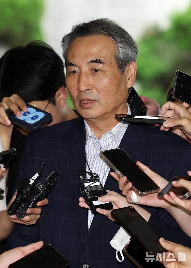 [서울=뉴시스] 조성우 기자 = 김건희 여사 의혹을 수사하는 민중기 특별검사가 26일 오전 서울 서초구의 사무실로 출근하며 취재진 질문에 답하고 있다. 2025.06.26. xconfind@newsis.com