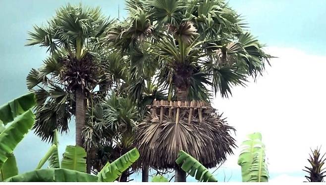 | ▲ 캄보디아 시골 마을 주민들은 지난 1990년대부터 야자잎 지붕 아래 박쥐를 유인해 밤새 머무르게 한 뒤, 이튿날 새벽 배설물을 수거해왔다. |