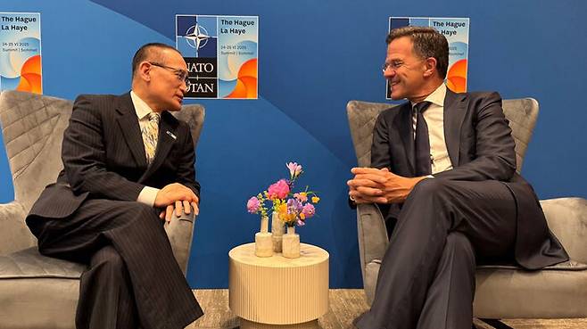 ▲ 위성락 국가안보실장(왼쪽)과 마르크 뤼터 NATO 사무총장