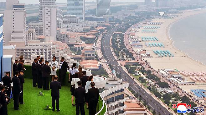 북한 조선중앙통신은 지난 24일 김정은 국무위원장이 참석한 가운데 "준공식이 진행됐다"며 "2만 명 숙박 능력의 호텔과 여관, 그리고 해수욕 봉사시설들이 꾸려져 있는 문화생활기지"라고 소개했습니다.