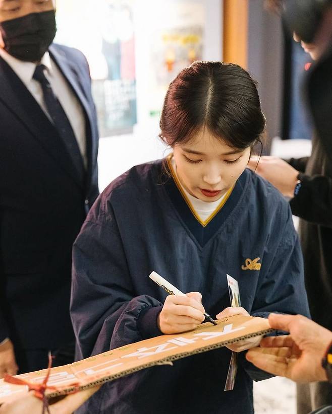 아이유는 할머니 작가들을 위해 직접 손편지를 준비해 전달했다. 그중 한 할머니에게는 명품 브랜드 에르메스 스카프를 매어주는 깜짝 선물도 준비해 감동을 안겼다.