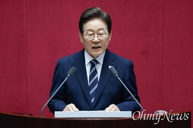 | ▲ 이재명 대통령이 26일 오전 서울 여의도 국회에서 열린 제426회국회(임시회) 제2차 본회의에서 2025년도 제2회 추가경정예산안에 대한 정부의 시정연설을 하고 있다. |