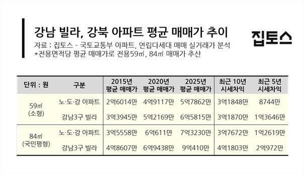 "5년간 강남 빌라 26% 오를 때 강북 아파트 20% 상승 그쳐"
