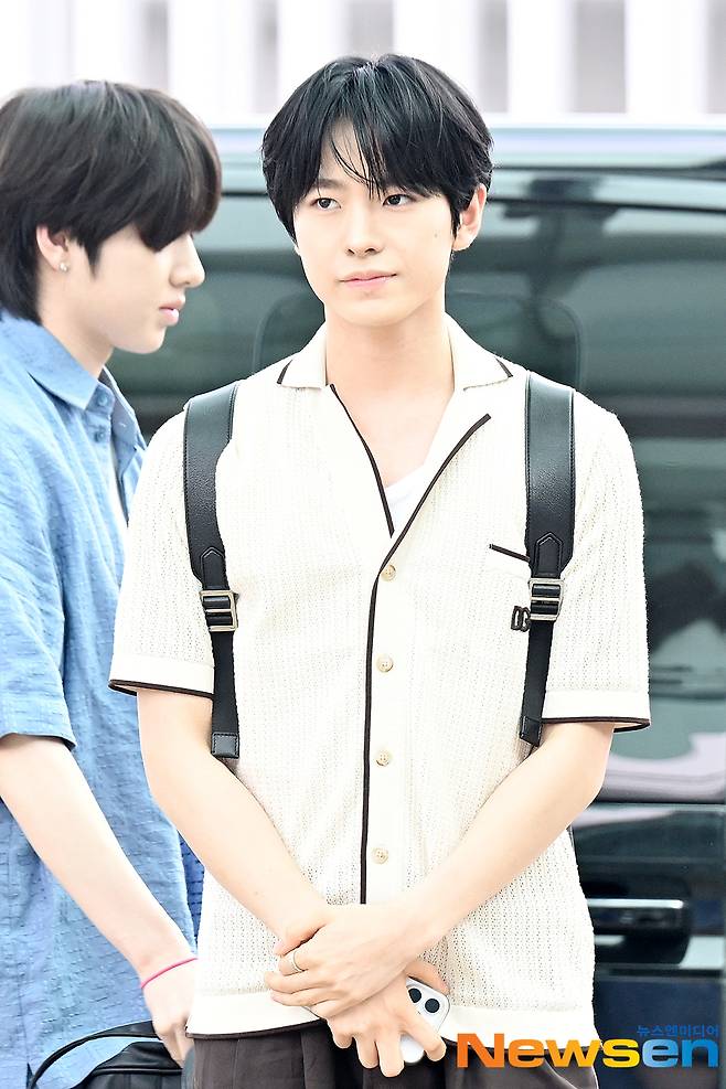 NCT WISH(엔씨티 위시) 멤버 시온, 유우시, 리쿠, 사쿠야, 료, 재희가 6월 26일 오전 인천 중구 운서동 인천국제공항 제 2여객터미널을 통해 SMTOWN LIVE 2025 TOUR in LONDON 일정 참석 차 런던으로 출국하고 있다.
