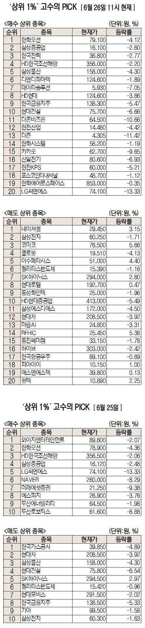 미래에셋증권에서 거래하는 고수익 투자자들이 26일 오전 가장 많이 순매수한 종목은 한화오션, 삼성중공업, 한국전력인 것으로 집계됐다.