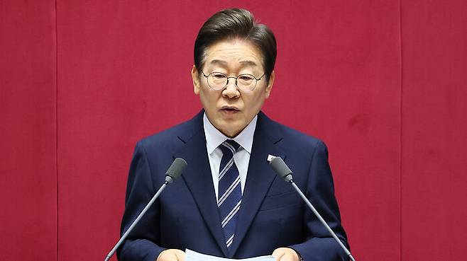 ▲ 이재명 대통령이 26일 국회에서 추가경정예산 시정연설을 하고 있다.