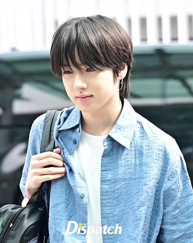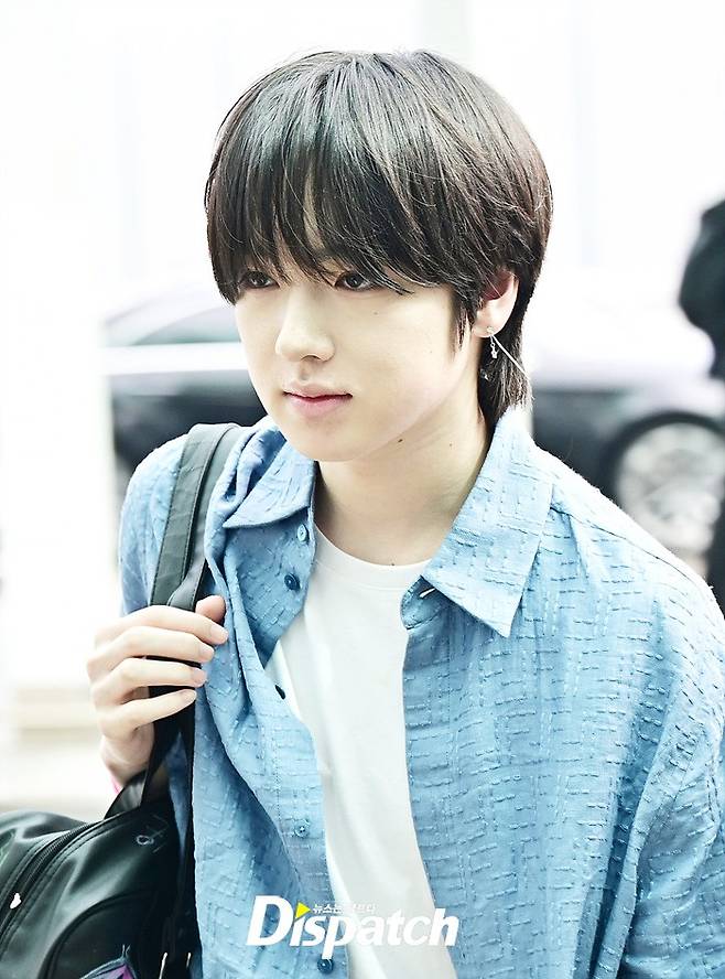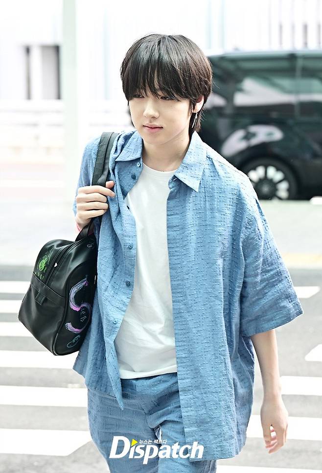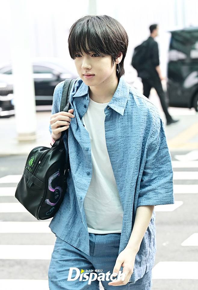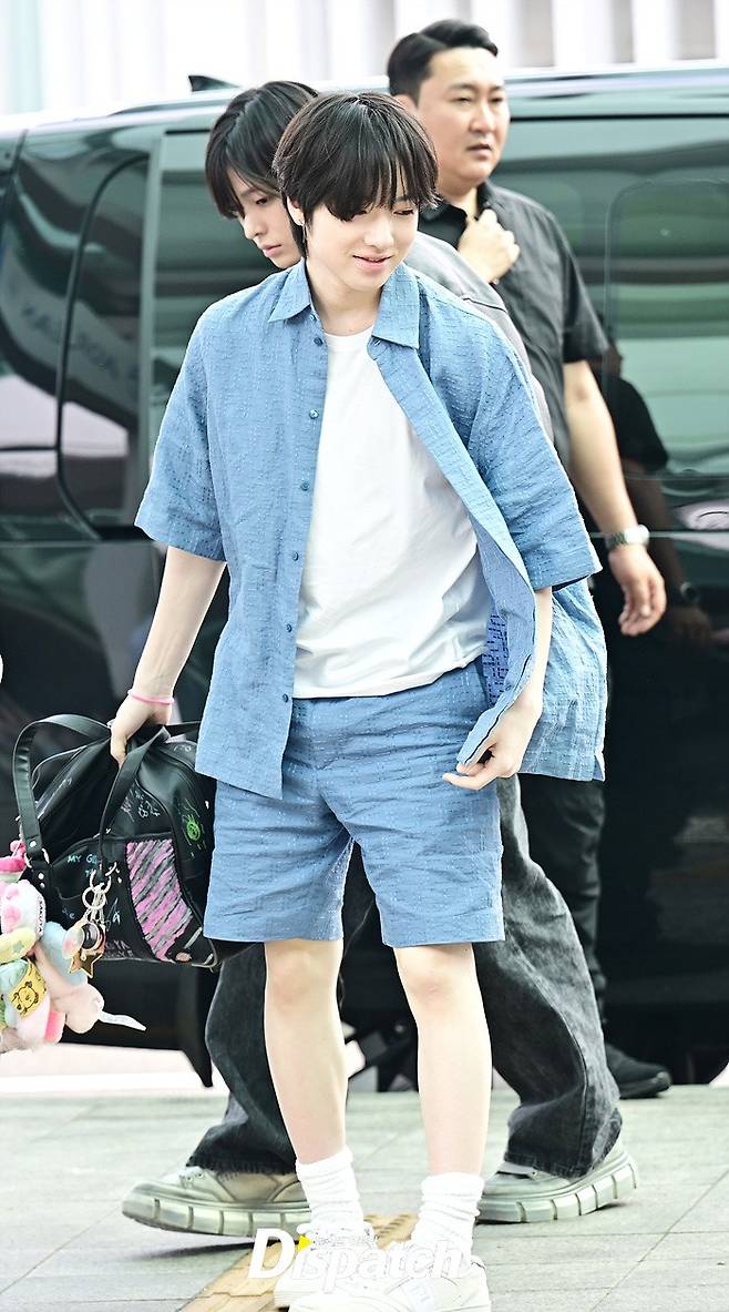 사쿠야는 블루 컬러의 셋업으로 상큼한 공항룩을 완성했다. 순정만화 주인공을 연상케 하는 훈훈한 비주얼도 돋보였다.
