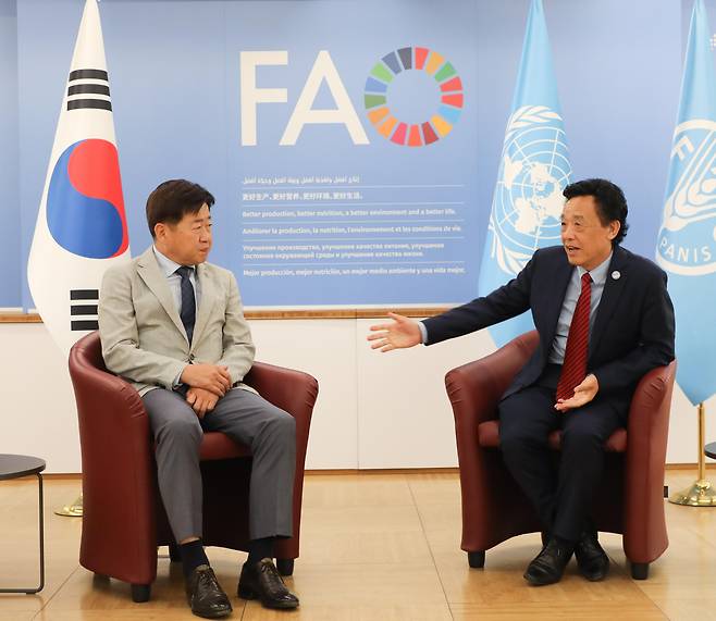 오영훈 제주도지사가 이탈리아 로마 유엔 식량농업기구 본부에서 큐동유 사무총장을 만나 제주 세계중요농어업유산의 국제 협력 방안을 논의했습니다.