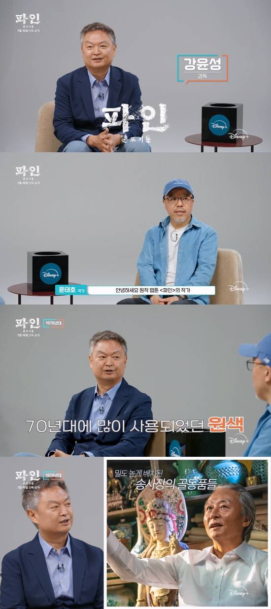 디즈니+의 오리지널 시리즈 '파인: 촌뜨기들'이 강윤성 감독과 원작 웹툰을 집필한 윤태호 작가가 함께한 맞터뷰 영상 1편을 공개했다.