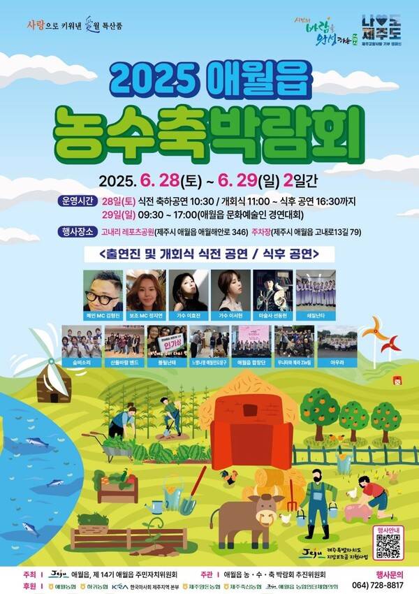 '2025 애월읍 농수축박람회'가 오는 28일과 29일 이틀간 제주시 애월읍 고내리 레포츠공원에서 펼쳐진다.