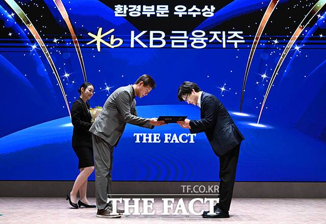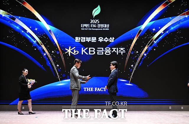 '2025 ESG 경영대상' 시상식이 26일 오후 서울 영등포구 여의도 한국거래소(KRX) 컨퍼런스홀에서 열린 가운데, KB 금융지주가 환경부문 우수상을 수상했다.