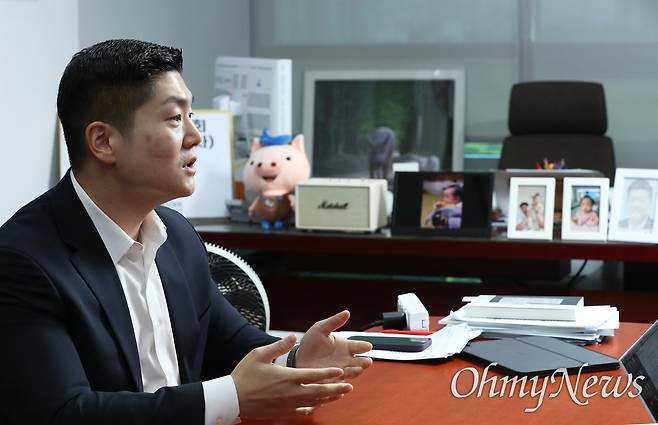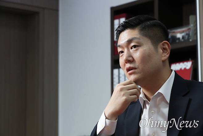 | ▲ 김재섭 국민의힘 의원이 23일 서울 여의도 국회 의원회관에서 <오마이뉴스>와 인터뷰 하고 있다. |