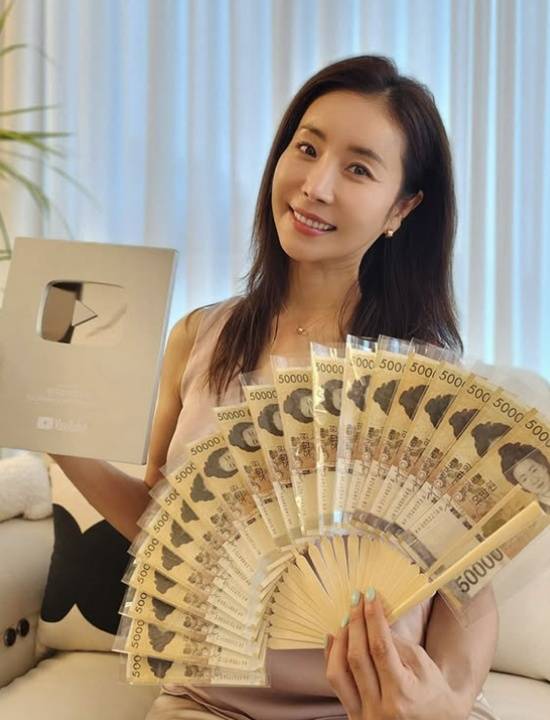 함께 공개된 사진에는 실버버튼과 함께 부모님이 직접 준비해준 '5만 원권 돈 부채'를 들고 있는 한다감의 모습이 담겼다.
