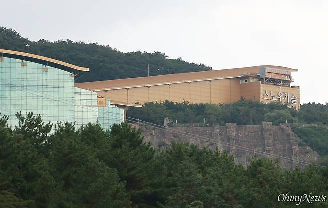 | ▲ 민간사업자인 대원플러스건설은 봉수전망대, 케이블카 등 도심 허파로 불리는 황령산을 유원지로 꾸미는 개발계획을 추진 중이다. 사진은 2단계 케이블카와 맞물려 있는 옛 스노우캐슬의 모습. |