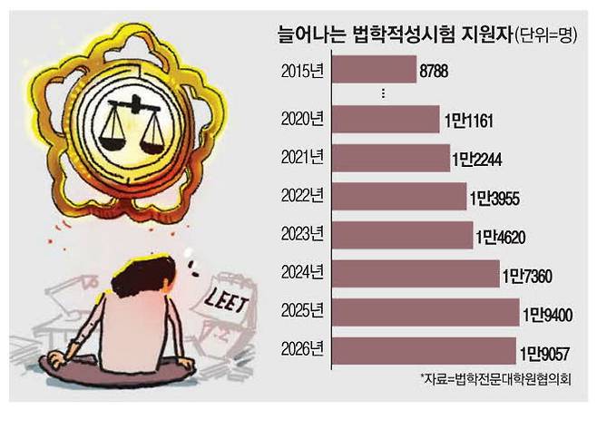 수치가 이를 증명한다. 법학전문대학원협의회 발표에 따르면 지난 5일 마감된 리트 최종 응시 원서 접수 인원은 1만9057명으로 작년(1만9400명)에 이어 2년 연속 1만9000명을 넘어서면서 조만간 2만명 시대가 열릴 것이라는 관측이 나온다.