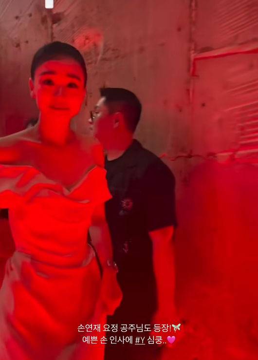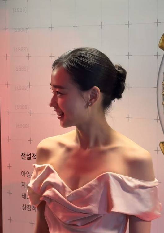 이날 손연재가 고른 건 어깨 라인을 꽃처럼 감싸는 오프 숄더 형태의 기다란 핑크색 드레스였다. 블랙 컬러와 화려한 조명이 뒤덮인 행사장에서 손연재는 고고한 라인을 뽐내며 등장했다.