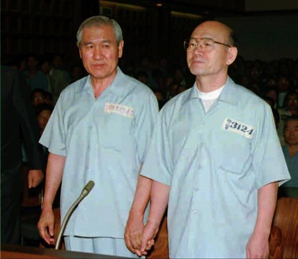 | ▲ 푸른 수의를 입은 두 전직 대통령. 오른쪽부터 전두환, 노태우씨. |