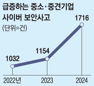 중소기업중앙회 관계자는 “중소기업은 제품 개발·생산·마케팅 같은 기본 업무만 하기에도 벅찬 경우가 대부분이라 사이버 보안에 투입할 자금이나 인력이 부족하다”며 “정보보호에 굉장히 취약한 게 현실”이라고 지적했다.