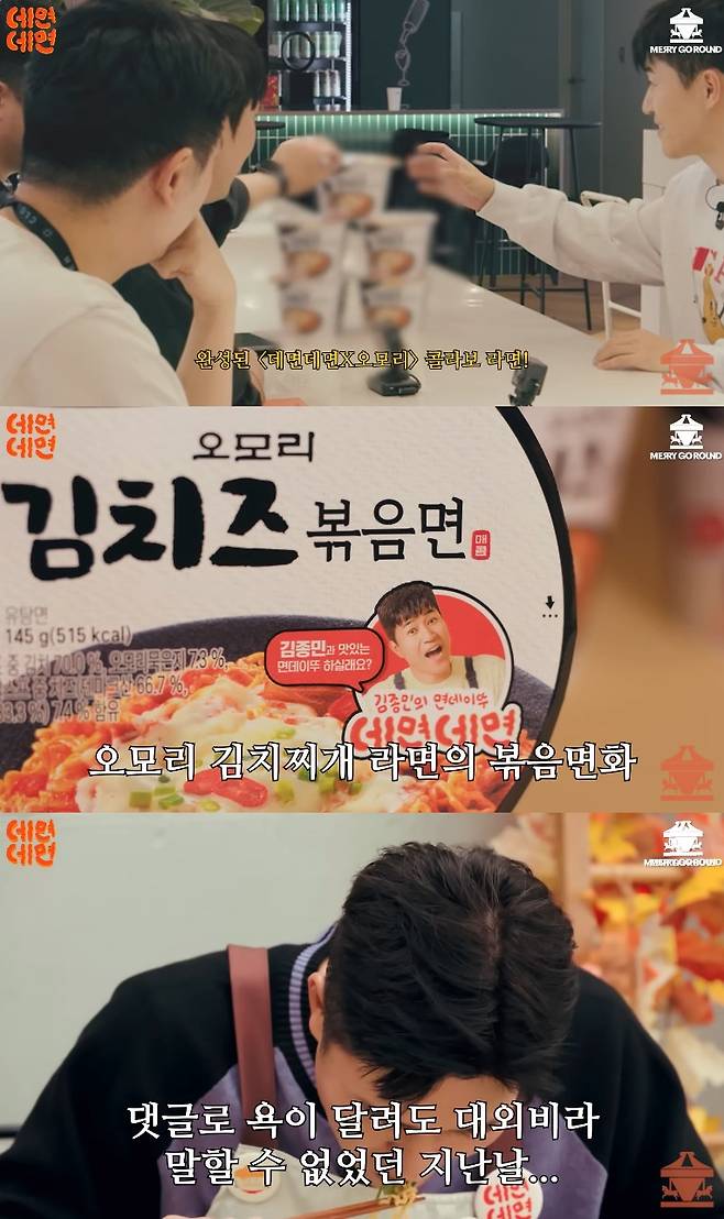 그렇게 오모리와 콜라보가 확정된 김종민은 몇 개월 뒤 GS 리테일을 다시 찾았다. 완성된 콜라보 라면은 오모리 김치찌개 라면의 볶음면화한 오모리 김치즈 볶음면이었다.