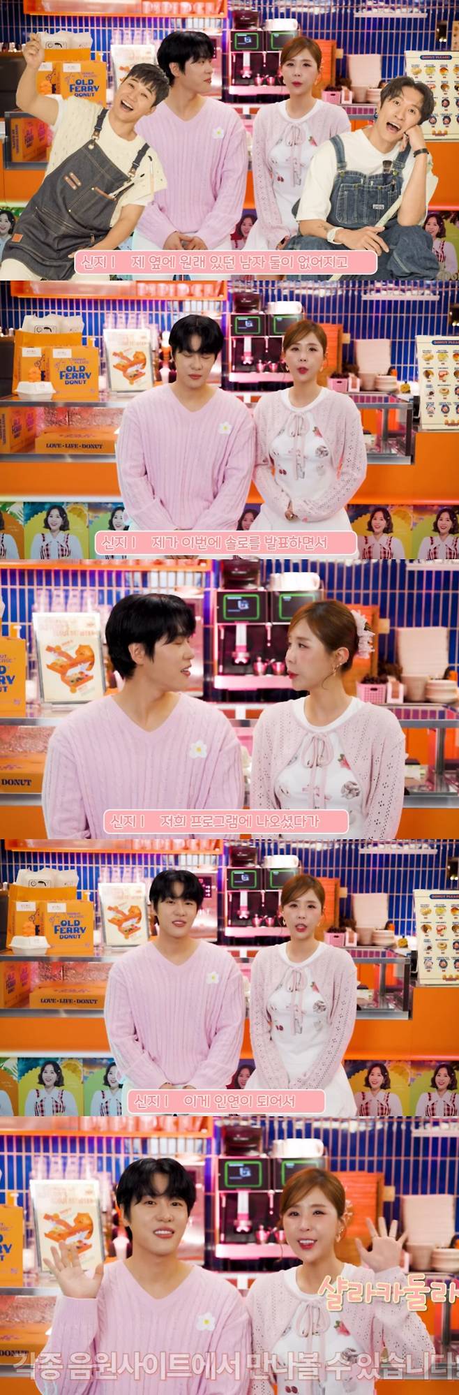 듀엣 '샬라카둘라'를 발표한 신지와 문원은 카메라 앞에 나란히 앉아 인사했다.