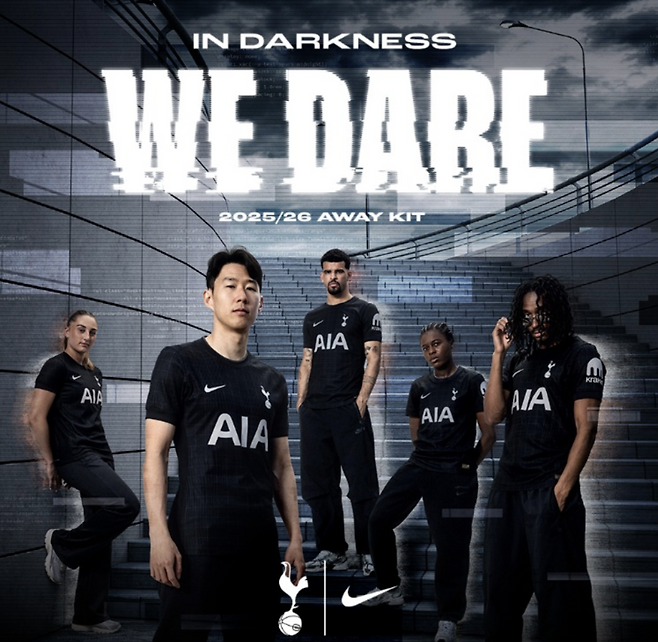 토트넘은 구단 공식 채널을 통해 2025-26시즌 원정 유니폼을 공개했는데 나이키가 제작을 맡았다. 전체적으로 검은색 그리드 패턴이 적용된 강렬한 디자인이다. ‘In Darkness We Dare(어둠 속에서도 우리는 도전한다)’는 슬로건과 함께 토트넘의 철학인 ‘To Dare Is To Do’를 현대적으로 재해석한 것이 특징이다.