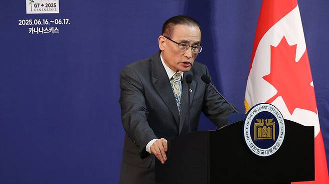 ▲ 브리핑 하는 위성락 국가안보실장