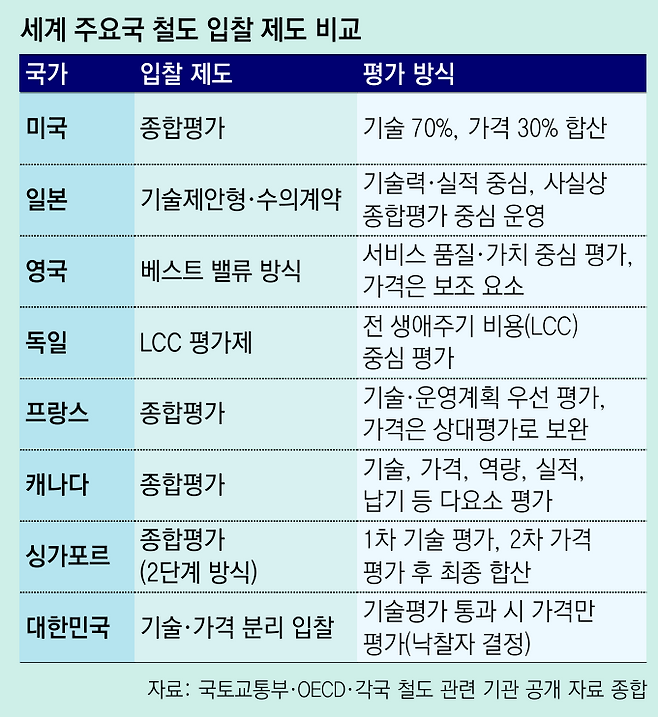해외 성과 뒷받침 못하는 국내 철도 구매 입찰 제도