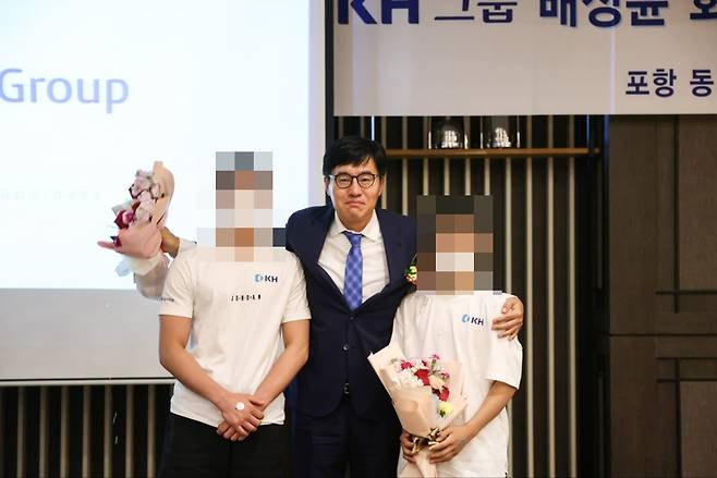 | ▲ 동남아에 도피중인 배상윤 KH그룹 회장이 최근 자신과 김성태 전 쌍방울그룹 회장이 북한에 돈을 보낸 것은 당시 경기도지사였던 이재명 대통령과는 전혀 관계가 없다는 인터뷰를 해 파장이 일고 있다. 사진은 도피 직전인 지난 2022년 5월 회사가 후원하는 선수들과 기념촬영을 하는 배 회장의 모습이다. |