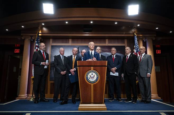 | ▲ 2024년 12월 18일 미국 워싱턴 D.C.의 미국 의회 의사당에서 공화당 의원들이 기자회견을 하고 있다. 이날 미 상원은 양당의 압도적 지지로 국방수권법(NDAA)을 통과시켰다. |