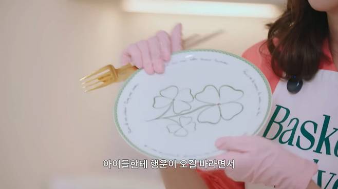 김남주는 음식을 담을 접시도 꺼냈다. 접시는 네잎클로버 그림이 그려진 명품브랜드 D사의 제품이었다. 김남주는 "남편과 D사 매장에 갔다가 여기 네잎클로버가 있길래 아이들한테 행운이 오길 바라면서 2개만 샀다"라고 말했다. 해당 제품은 약 20만원이다.