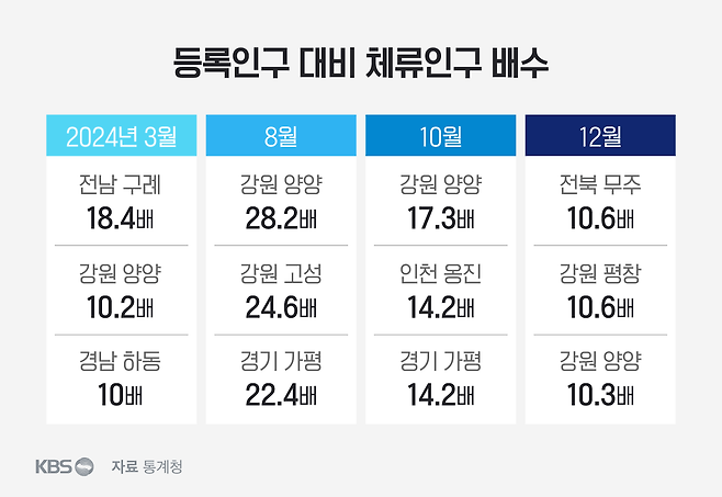 등록인구 대비 체류인구 배수는 3.6배~5.9배였습니다.