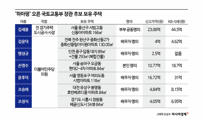 국토부 장관 하마평 인사들 부동산 까보니…여의도·용산·송파 재건축 다 있네