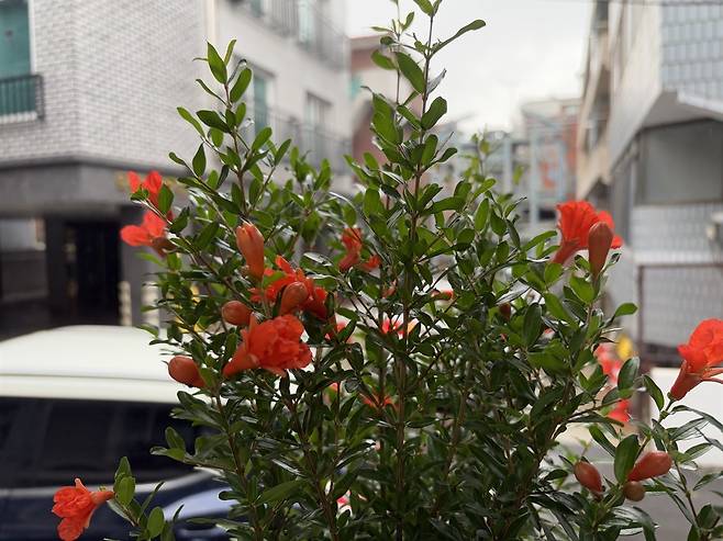| ▲ 베란다의 석류꽃이 화사하다. |