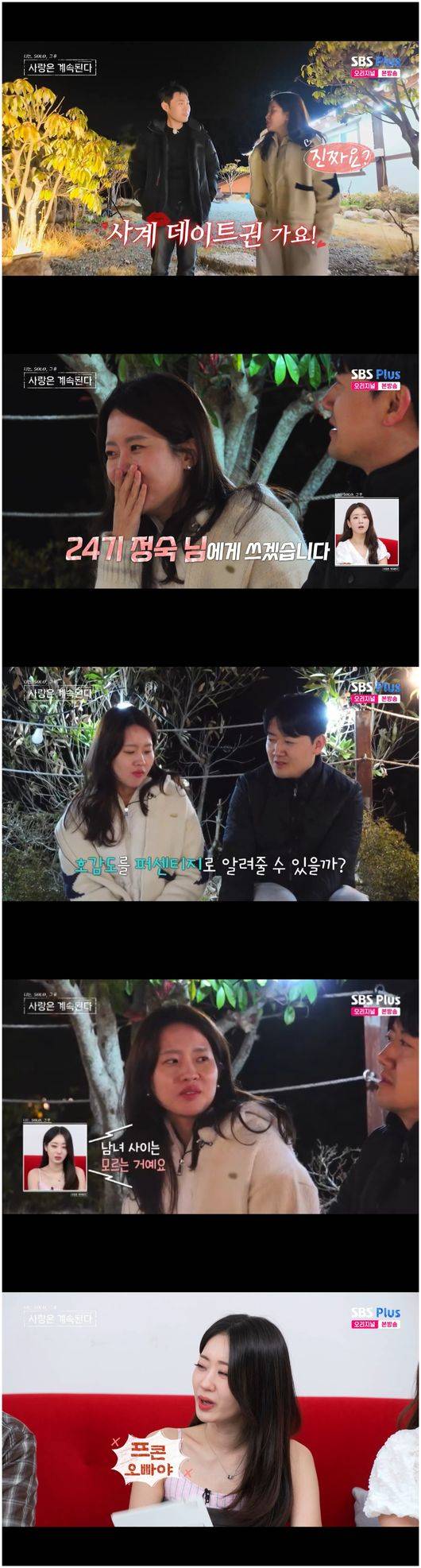 26일 방영한 ENA, SBS Plus 예능 '나는 SOLO, 그 후 사랑은 계속된다'(이하 '나솔사계')에서는 지난주에 이어 17기 옥순의 다대일 데이트가 이뤄졌다.