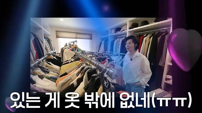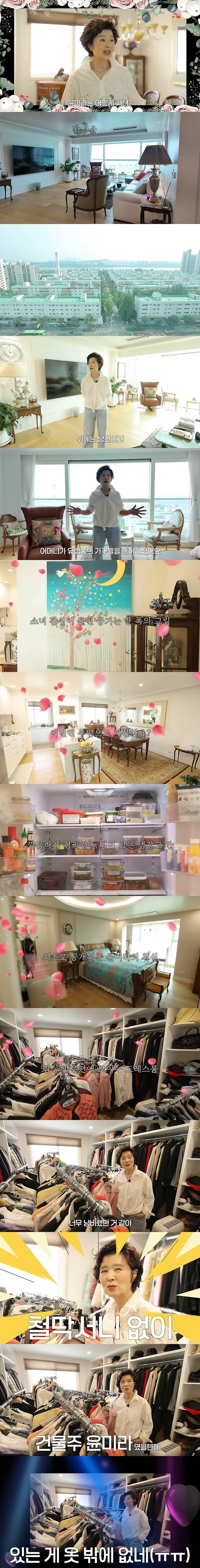 이어 침실과 드레스룸을 공개, 윤미라는 "우울하고 꿀꿀 할 때 외출 했을 때 한번 씩 마음에 드는 거 사고 그러다 보니까 이렇게 많아졌다. 지금은 약간 후회스러운 게 너무 낭비했던 것 같다. 철딱서니 없이"라고 했다. 이어 그는 "이런 거 다 아꼈으면 지금 몇 층짜리 건물주였을텐데 있는 게 옷 밖에 없다"고 해 웃음을 안겼다.