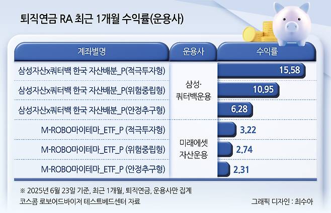 1개월 수익률 1~3위 삼성·쿼터백자산운용 퇴직연금 RA