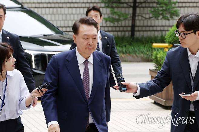 | ▲ 윤석열 전 대통령이 지난 16일 오전 서울 서초구 서울중앙지방법원에서 열리는 내란 우두머리 혐의, 직권남용 권리행사 방해 혐의 사건 7차 공판에 출석하고 있다. |