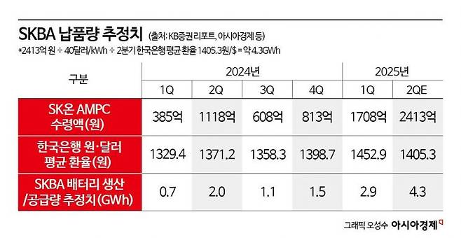 전우제 KB증권 연구원은 "SK온 미국 공장이 지난 3~4월 중 100% 전면 가동에 도달한 것으로 추정된다"며 "5월부턴 고출력 전기차 아이오닉9와 EV9의 재고 확충이 시작됐고, 현대차의 4월 생산 물량만 따져도 배터리 수요는 1.5GWh 이상"이라고 분석했다. 현재 SKAB의 현대차향 비중은 75%에 달한다.
