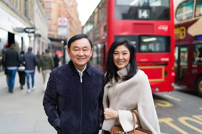 | ▲ 과거 군부 쿠데타로 실각한 탁신 친나왓 전 총리와 여동생인 잉락 전 총리가 영국 런던에서 다정스럽게 찍은 사진. |