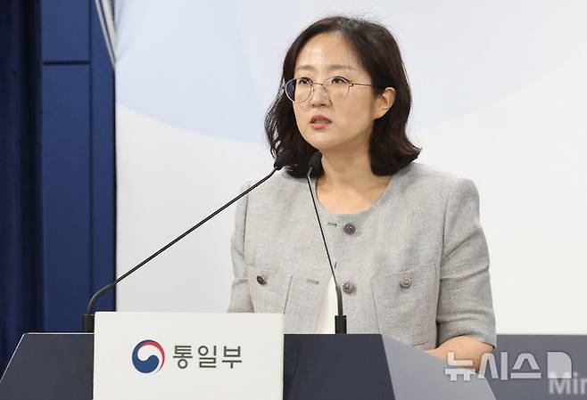 [서울=뉴시스] 추상철 기자 = 장윤정 통일부 부대변인이 27일 오전 서울 종로구 정부서울청사에서 현안 관련 정례브리핑을 하고 있다. 2025.06.27. scchoo@newsis.com