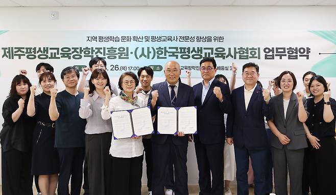 제주평생교육장학진흥원(원장 진희종)은 지난 26일 (사)한국평생교육사협회와 '지역 평생학습 문화 확산 및 평생교육사 전문성 향상'을 위한 업무협약(MOU)을 체결했다.