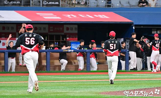 전상현은 7회말 구원 등판한 뒤 박수종과 송성문을 각각 좌익수 뜬공, 중견수 뜬공으로 솎아내더니 임지열을 낫아웃 삼진으로 잡아 이닝을 매조졌다.
