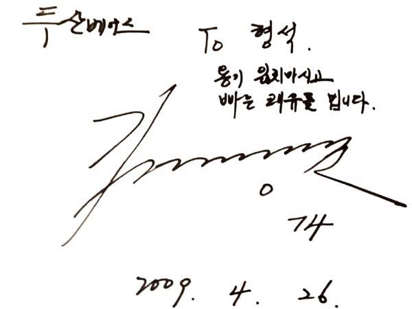 | ▲ 2009년 뇌출혈로 쓰러져 병원에 입원했을 때도 친한 동생이 받아준 김경문 감독의 사인과 메시지는 큰 위로가 됐다. |