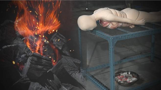 수연 씨가 철제 구조물 위에 엎드려 눕자 김 씨의 아들이 구조물 아래에 대야를 놓고 그 안에 숯불을 담았다. 수연 씨는 숯불 위로 넘어져 화상을 입은 것이 아니라 숯불로 고문을 당한 것이었다.