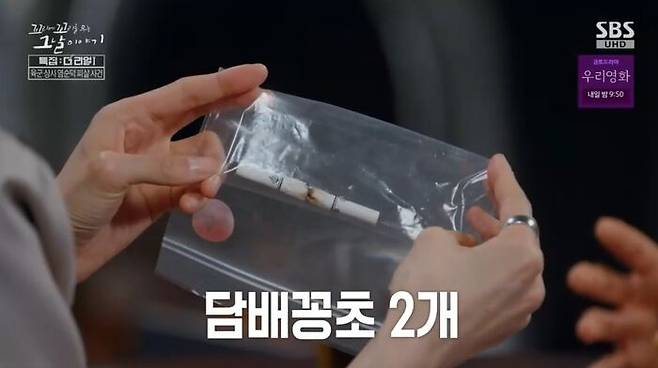 "남은 재가 담배꽁초가 바닥에 떨어진 상태에서 일정 시간 타들어 갔어요. 자연 연소가 돼서 타들어 간 게 현장 사진에서 확인이 돼요. 그렇다는 건, 멀리서 차를 타고 지나가면서 던지거나, 멀리서 던지거나 그런 게 아니라. 바로 피해자 옆에 있었다는 반증이죠."