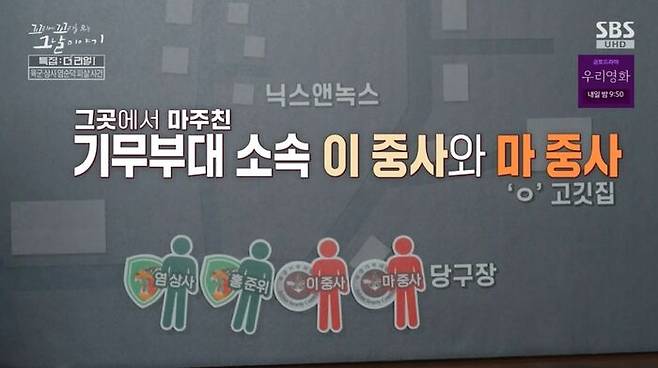 닉스앤녹스 직원 오 씨에 따르면, 그날 홍 준위와 이 중사는 꽤 가까워 보였다고 해. 반면 염 상사는 그들과 어울리지 않는 분위기였대. 그러다 이 중사가 염 상사를 홀로 데리고 나가서 15분간 인상을 쓰면서 언쟁을 했다는 거야. 대체 그 15분 동안 둘 사이에 어떤 일이 있었던 걸까. 그래서 24년 전, 닉스앤녹스에서 일했던 직원들을 찾아봤어.