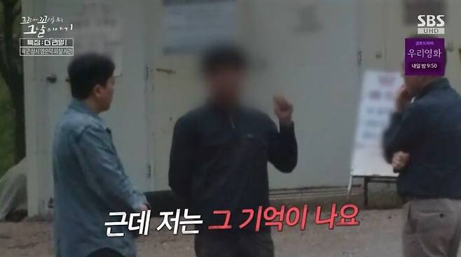 "제가 이제 확신이 간 거는, 이 중사 그 양반이 자살했다는 얘기를 들었을 때. '아 죽였구나' 그때 느낌이 왔어요. 아 뭔가 켕기는 게 있으니까 자살했구나.. 제가 골목길에 쭈그려 앉아 있었던 기억이 나거든요. 그게 처음엔 기억 안 나다가. 제가 여관 골목 이런 데서 쭈그려 앉아 있는데, 이 중사가 손을 잡고 간 거 같은 그런 기분이… 어디로 (데려갔는지는) 모르겠어요. 범행 현장으로 가는 길이었는지, 전 그 기억은 모르겠어요. 근데 전 그 기억이 나요. 참 기무(부대)가 웃기는 게, (이 중사가) 뭐 사고 쳤네, 뭐 수습을 한다고 얘기를 했다고 듣긴 들은 것 같아요. 뭐 수습을 하네 안 하네 뭐 그런 얘기를 했다고…"