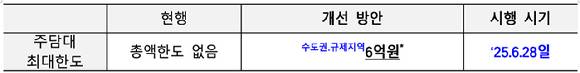 수도권·규제 지역에서 보유 주택을 담보로 받는 생활안정자금 목적 주담대 한도도 최대 1억원으로 제한했다.