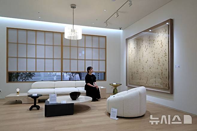 [서울=뉴시스] 박진희 기자 = 디뮤지엄(D MUSEUM)은 27일 서울 성동구 디뮤지엄 스플릿 하우스에서 예술 작품과 컬렉션을 일상의 공간에서 만나보는 신개념 아트&라이프 전시 '취향가옥 2: Art in Life, Life in Art 2' 언론공개회를 갖고 김창열 작가의 작품 '물방울 ENS 204'를 선보이고 있다. 2025.06.27. pak7130@newsis.com