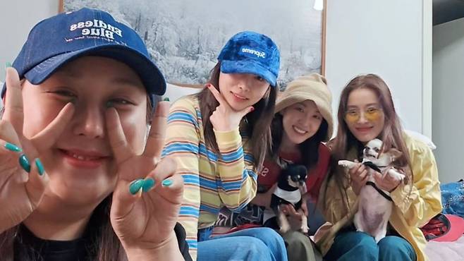 사진 속 풍자는 가수 황보, 제아, 산다라박과 함께 이희철의 본가를 방문했다.